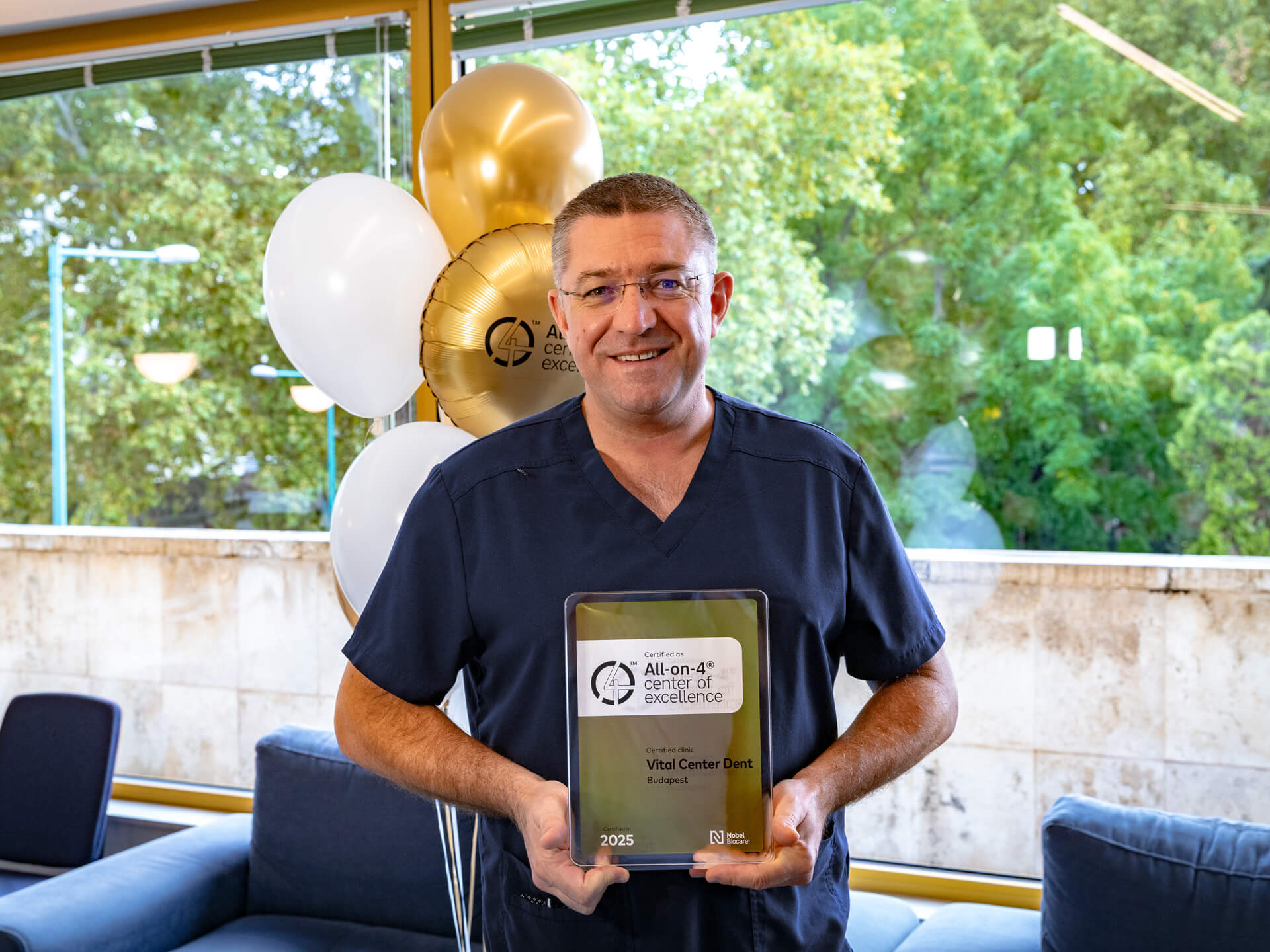 Depuis plus de 30 ans, le VitalCenter incarne l’excellence en implantologie et en réhabilitation bucco-dentaire complète. Nous avons été parmi les premiers en Hongrie à proposer la méthodeAll‑on‑4®, et dès le début nous suivons rigoureusement le protocole original, exclusivement avec les implants premium Nobel Biocare.
